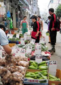| 정동수, 정동헌 형제가 운영하는 농산물 할… 정동수, 정동헌 형제가 운영하는 농산물 할인매장. 싱싱한 채소가 늘 깔끔하게 정돈되어 있어 손님들의 발길이 끊이지 않는다 |