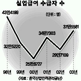 실업급여는 부득이한 사정으로 퇴직한 실직자의 생계안정과 재취업을 위해 95년부터 고용보험에서 지원하고 있다.고용보험 가입기간이나 연령에 따라 90∼240일간 퇴직 전 평균 임금의 50%(하루 최고 3만 5000원)가 지급된다.