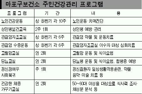 치과진료외에도 마포구 보건소는 주민들을 위한 다양한 서비스를 제공하고 있다.특히 연중 운영하고 있는 11가지 건강관리 프로그램은 주민들의 큰 호응을 얻고 있다.