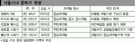 청량리 588,미아리·천호동 텍사스촌,용산역·영등포역 사창가 등 서울의 ‘5대 윤락가’를 끼고 있는 자치구들이 이들 지역 재개발을 위해 부심하고 있다.