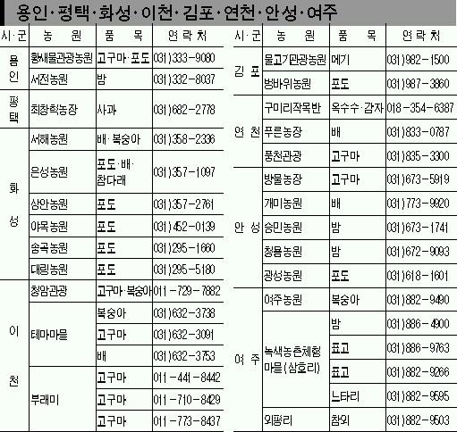 2일 경기도에 따르면 올가을 문을 여는 ‘수확체험농장’은 모두 70여곳.가족과 함께 찾아가면 고구마와 더덕을 캐고,토실토실한 알밤도 줍고 옥수수도 딸 수 있다.