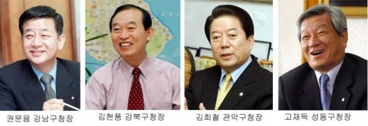 풀뿌리 민주주의가 전면 실시된 지 어언 9년.서울 자치구들은 점차 자신만의 색깔을 찾아가고 있다.25개 자치구들이 추진하는 지역개발 등 역점사업에는 민선 구청장들의 행정 및 개발철학이 반영돼 있는 것을 알 수 있다.사업추진 과정에서 엿보이는 구청장들의 독특한 개성은 흥미를 더한다.
