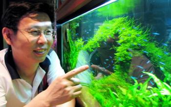 그가 물고기에 쏟아붓는 애정은 대단하다.직접 짠 어항에 물고기 종류에 따라 그들의 ‘고향’에서 자라는 산호 및 수중식물을 갖추어 놓았다.