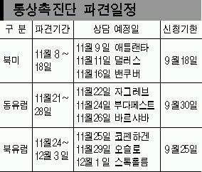 ●경기도는 중소기업의 해외마케팅을 지원하기 위해 북미지역및 동·북유럽지역에 통상촉진단을 파견키로 하고 참가업체를 모집한다.