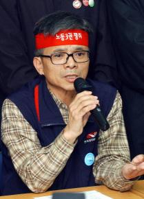 | 전국공무원노동조합 김영길 위원장이 10일 오전 가진 기자회견에서 총파업 결정을 선언하고 있다.