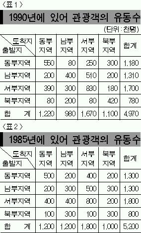 (3)1985년에 북부지역으로부터의 관광객 수는 이 나라 전체의 관광객 수의 20%를 하회하고 있었지만 1990년에는 이 비율이 20%를 상회하게 되었다.