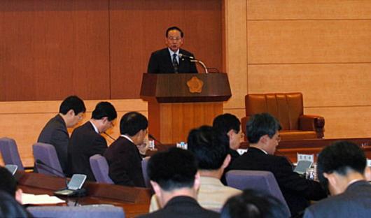 | 지난 19일 세종로 정부중앙청사에서 열린 고… 지난 19일 세종로 정부중앙청사에서 열린 고위공무원단 도입 방안에 대한 공청회에서 조창현 중앙인사위원회 위원장이 인사말을 하고 있다. 손원천기자 angler@seoul.co.kr |