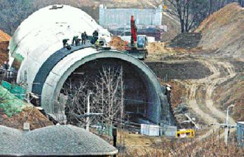 | 경기도 남양주 덕소지역의 중앙선 복선화 터… 경기도 남양주 덕소지역의 중앙선 복선화 터널공사가 한창이다. 중앙선 복선화가 내년 말 완공되면 덕소역에서 청량리까지 15분 정도면 연결 가능하다. 이종원기자 jongwon@seoul.co.kr |