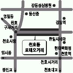 천호동 로데오거리는 지하철 5호선, 또는 8호선 천호역 인근 천호 구사거리에서 천호대로로 연결되는 길이 300m, 너비 12m의 천호구길에 모두 13억 6000만원을 들여 조성됐다.