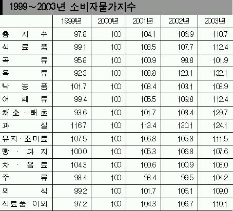 (4)과실의 물가는 2002년에 비해 2003년에는 오히려 하락하고 있음을 통해 알 수 있다.