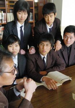 | 전교생이 210명 뿐인 경기도 화성의 송산고… 전교생이 210명 뿐인 경기도 화성의 송산고등학교는 교사와 학부모 학생이 의기투합해 2005학년도 대입에서 서울대 2명을 포함, 수능 응시생의 85%가 대학에 진학하는 성과를 올렸다. 사진은 새학기를 맞은 송산고 재학생들이 지난 4일 학교 수업을 받고 있는 모습. 손원천기자 angler@seoul.co.kr |