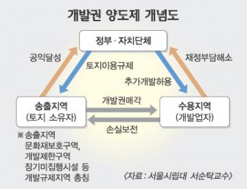 개발권양도제는 문화재보호구역 인근 지역을 개발하는 사업자가 ‘개발권’을 사들여, 용적률을 높여 개발하고, 개발권을 판 토지 소유자에게 손실을 보전해 주는 것을 말한다. 문화재를 보호하는 동시에 개발업자와 토지 소유자는 이득을 볼 수 있다. 미국·일본을 비롯한 선진국에서는 일반화된 제도다.
