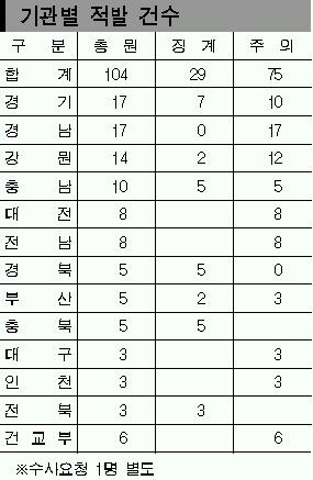 감사에서 적발된 105명 가운데 1명이 검찰에 고발됐고,29명이 징계대상으로 분류됐다. 나머지 75명은 주의조치를 받는 선에 그쳤다.