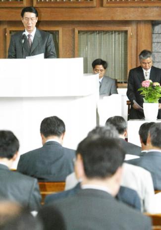 | 18일 오후 연세대 루스채플에서 교수들이 개… 18일 오후 연세대 루스채플에서 교수들이 개교 120주년을 맞아 마련한 '연세대 교수윤리강령'을 채택하고 있다. 정연호기자 tpgod@seoul.co.kr |