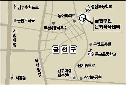한인수 금천구청장은 “지난해 센터를 이용한 구민수가 6만 5000명에 이를 만큼 인기가 높다.”며 “보다 다양하고 내실있는 강습 프로그램을 만들고 시설관리를 잘해 서남지역의 주요 문화체육시설로 만들어갈 것”이라고 말했다.(02)861-1313,890-2410.