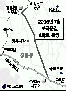 구는 “정릉길에서 솔샘길 사이에 있는 900m의 보국문길이 왕복 2차로에서 왕복 4차선 도로(폭 20m)로 확장된다.”고 밝혔다. 구는 공사비를 포함해 총 사업비 356억 4000만원을 들여 내년까지 확장을 마무리할 계획이다.