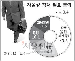 반면 인사담당자들이 자율권이 확대되면서 ‘어려운 점’으로 업무량 증가(88.1%), 전문지식 부족(3.6%), 공정한 인사운영의 어려움(2.4%) 등을 꼽았다. 인사 권한이 위임되면서 업무가 크게 늘어났지만 인력 및 경험 부족으로 제도 정착에 어려움을 겪고 있음을 보여준다.
