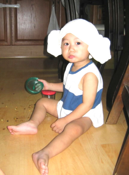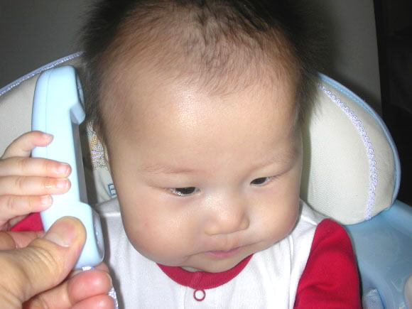 웰빙아기 우리 17개월 된 큰아들이 양머리를 하고 있어요.한창 ‘웰빙’에 열중이라 살도 오동통 올랐지요.간식도 검은 콩만 먹는답니다. (김종필·서울 동대문구 전농1동)