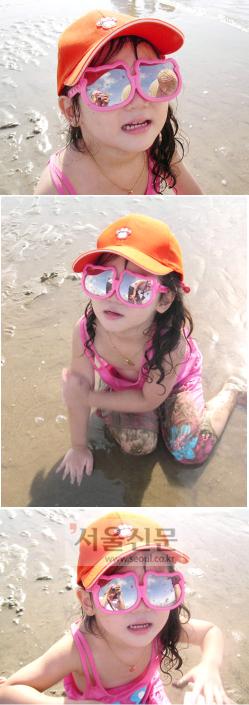 거울 같은 선글라스 지난 여름 휴가차 간 서해안 태안 신두리 해수욕장.우리 딸 정민이가 백사장에서 엄마 선글라스를 끼고 한껏 폼을 잡았어요?스크린에 데뷔해도 되겠지요? (강승훈·서울 양천구 신정2동)
