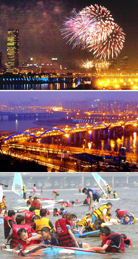 이런 관점에서 보면 지난해 개최된 서울시 한강시민공원사업소 주최 야외콘서트와 서울불꽃축제는 또 다른 한강의 희망을 엿보게 한다. 물과 야간의 즐거움이 결합된 축제의 장으로 한강의 가을밤을 더욱 풍성하게 만들었기 때문이다. 가족단위 시민들과 연인, 외국 관광객들에게 축제 한마당으로 다가가는 데 성공적이었다는 진단이다. 문화에 대한 국민수요가 팽창하고 서울의 문화시설이 태부족인 실정에서 큰 돈 들여 문화시설을 신축하기보다는 문화이벤트를 통한 한강의 축제·이벤트 전략이 성공적이었다고 입을 모으고 있다.