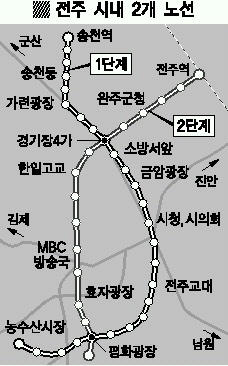 또한 전주 경전철은 사업비 4700억원이 투입돼 전주시내 간선도로를 따라 총 24.3㎞ 2개 노선으로 건설된다.
