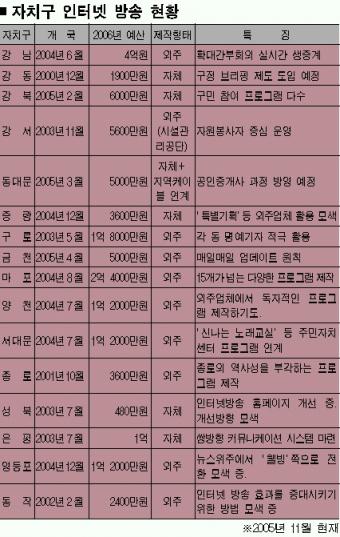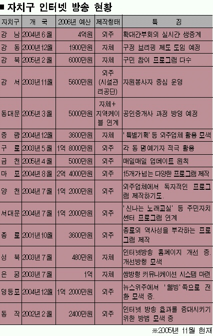 서울시 자치구들의 인터넷 방송국 운영 현황은 다양하다. 이미 안정기에 접어든 곳이 있는가 하면, 걸음마 단계에서 힘겹게 버티는 곳도 있다.