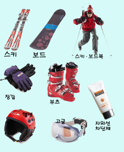또한 바람을 가르며 라이딩을 즐기다 보면, 피부가 바람에 쓸려 화끈거림을 느낄 수 있다. 스키ㆍ보드를 타기 전에 자외선 차단제를 발라주고, 영양보습크림으로 피부를 달래주어야 한다.