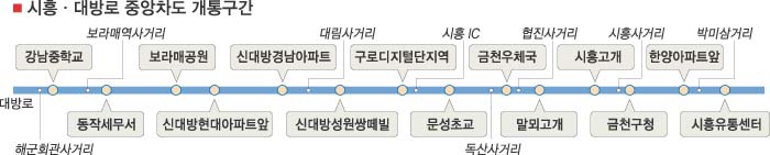 이번에 개통되는 중앙차로 구간은 시흥대로(안양시계)∼대방로 9.4㎞이다. 이 구간에는 구로디지털단지역 환승센터를 비롯해 시흥유통센터, 한양아파트 앞, 금천구청 등 버스정류장 15곳이 있다.