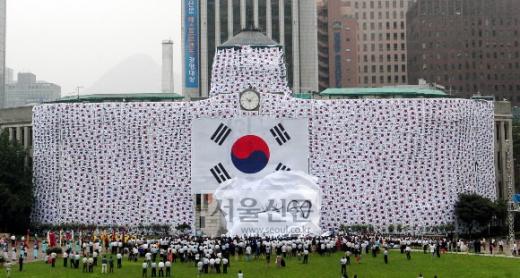 다음으로는 광복절 앞뒤로 서울시청을 뒤덮었던 태극기 물결이 6위를 차지했다. 우리나라의 첫째 가는 표상인 태극기 3600장은 시민들에게 기념품으로, 또 네덜란드 헤이그 이준 열사의 기념관으로 기증돼 나라사랑을 널리 알리는 데 한몫 거들었다.