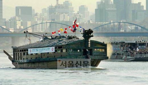 한강에 발이 묶여 있던 거북선이 ‘불멸의 이순신’의 인기에 힘입어 남북 군사분계선을 헤치며 서해 뱃길을 열었다는 소식은 ‘8걸’에 뽑혔다. 거북선은 11월 9일 한강을 출발,5일 만에 경남 통영에 안착했다.15년 전인 1990년 시가 해군에 의뢰해 원형 크기로 복원한 이 거북선은 선체의 길이 25.45m, 너비 10.3m, 높이 6.3m 규모이며 승선 정원은 150명이다.