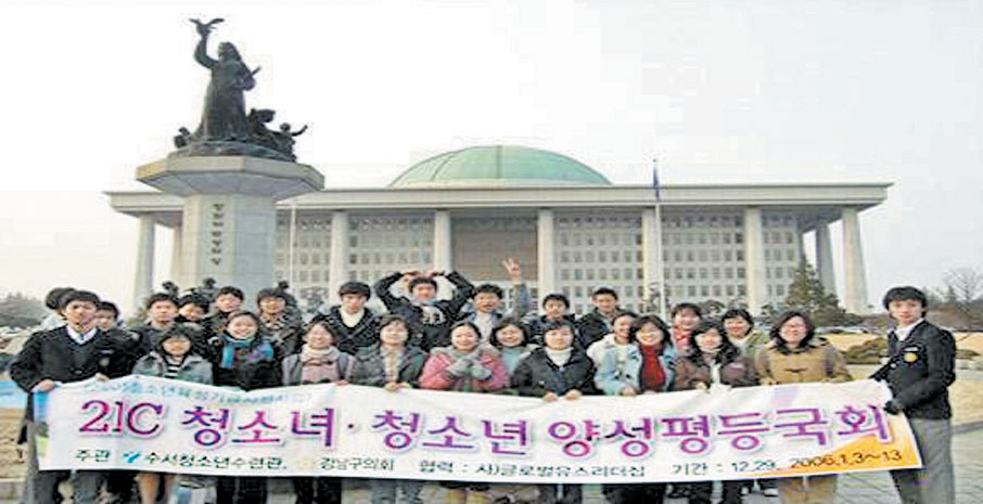 서울 강남구의회와 수서청소년수련관이 공동주관하는 ‘21C 청소녀·소년 양성평등국회’가 지난 3일부터 13일까지 국회 등에서 개최됐다.