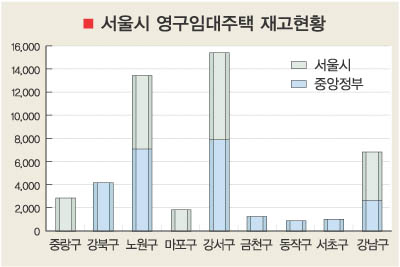 한편 자치구별로는 대규모 택지개발사업이 이루어진 강서구(1만 5275호)와 노원구(1만 3335호)에 영구임대주택이 집중적으로 입지하고 있다. 이에 따라 빈곤층 집중거주에 따른 해당 자치구와 지역사회의 불만이 상당히 높은 실정이다.