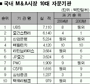 (3)모건스탠리의 2004년 실적은 알 수 없고 다만 순위만 파악할 수 있다. 그러나 3위였던 삼성증권의 실적을 통해 판단한다면 2005년 모건스탠리의 실적에 비해 삼성증권의 실적은 60% 이상 하락했다.