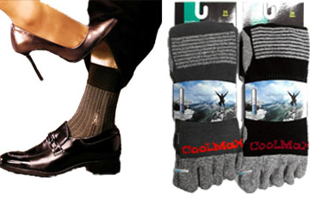 양말 전문업체 실버텍스는 스포츠 활동을 할때 체온과 심장 박동수를 낮춰 주고, 체내수분을 최적화시켜주는 기능이 입증된 쿨맥스 섬유로 제작한 쿨맥스 양말(사진 오른쪽)을 선보였다.
