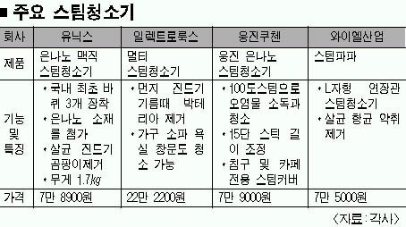 스팀청소기 시장이 급성장하고 있다. 지난 2003년 300억원대였던 시장이 지난해 1500억원대로 2년 만에 5배나 커진 것으로 업계는 추산한다. 올해는 2000억∼2500억원에 이를 것으로 전망된다.