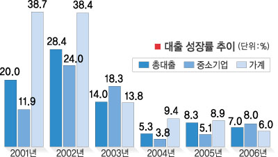 다.2001년과 2002년에는 중소기업 대출이 가계 대출보다 많았으나 2003년에는 가계 대출이 더 많았다.