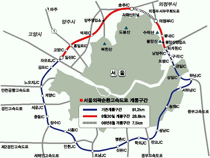 일산∼퇴계원간 서울외곽순환도로를 주행하면 이 도로가 앞으로 고양·양주·의정부·포천과 남양주 등 경기북부 지역에 미칠 교통체증 개선과 지역경제 활성화에 얼마나 큰 영향을 미칠지 실감하게 된다.