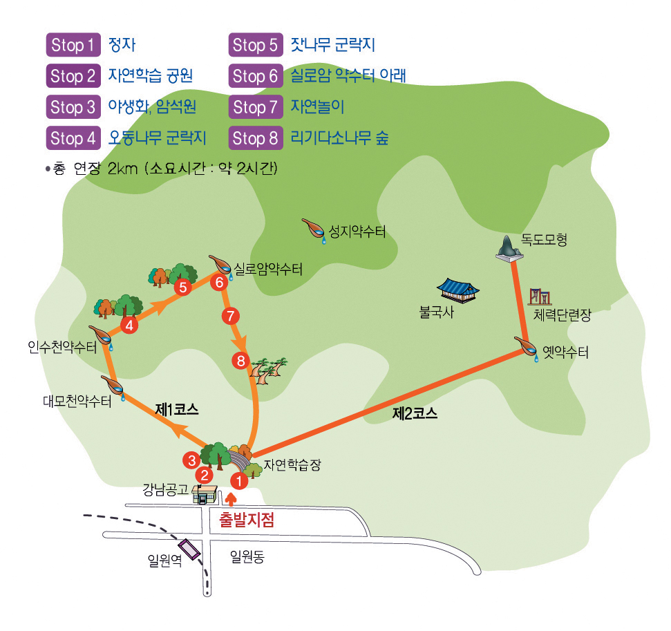 지하철 3호선 일원역 5번 출구에서 나와 강남공고를 지나면 만난다. 문의는 강남구청 공원녹지과(2104-1918).