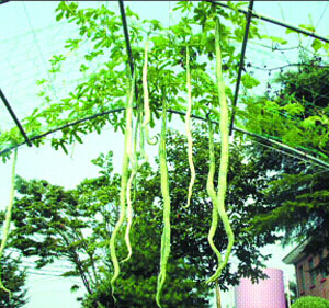 어른 키보다 훨씬 큰 2m 넘게 자란 오이들이 길게 늘어져 있는 모습이 영락없는 뱀을 연상시킨다. 이름하여 ‘사두오이’다.
