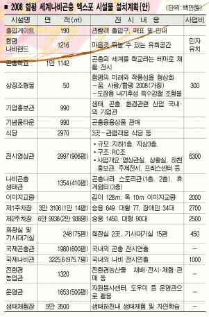 엑스포 운영비는 브랜드 임대사업, 휘장사업, 재경부로부터 허가받은 후원업체(스폰서) 등으로 충당한다. 이 군수는 “글로벌엑스포에 걸맞게 일본 도요타와 독일 폴크스바겐 등을 후원사로 끌어들이는 방안도 연구 중”이라고 말했다.