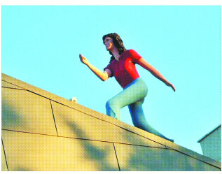 정확한 장소는 종로구 소격동 국제갤러리 지붕 위다. 그곳엔 웬 여인이 용감하게도 지붕 위에서 하늘을 향해 걸어가고 있다. 볼 것 많은 삼청동 길에서도 시선을 확 잡아끌 만큼 도발적인 자태다. 청바지에 빨간 반팔 셔츠를 걸친 옷차림도 신선하다.