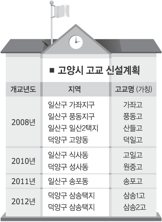 경기교육청 제2청은 최근 오는 2012년까지 고양지역에 일반계 고교 9곳의 신설계획을 발표했다.(표)