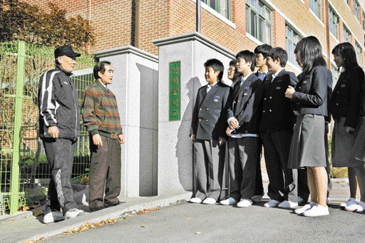 학교지킴이는 오전 8시에 출근, 등교하는 아이들을 돌본다. 날씨가 추워지다 보니 교복 와이셔츠 대신 목폴라를 입은 아이들이 많다. 두 선생님은 교문 양쪽에서 아이들을 하나하나 불러 교복을 챙겨 입으라고 할아버지처럼 타이른다.