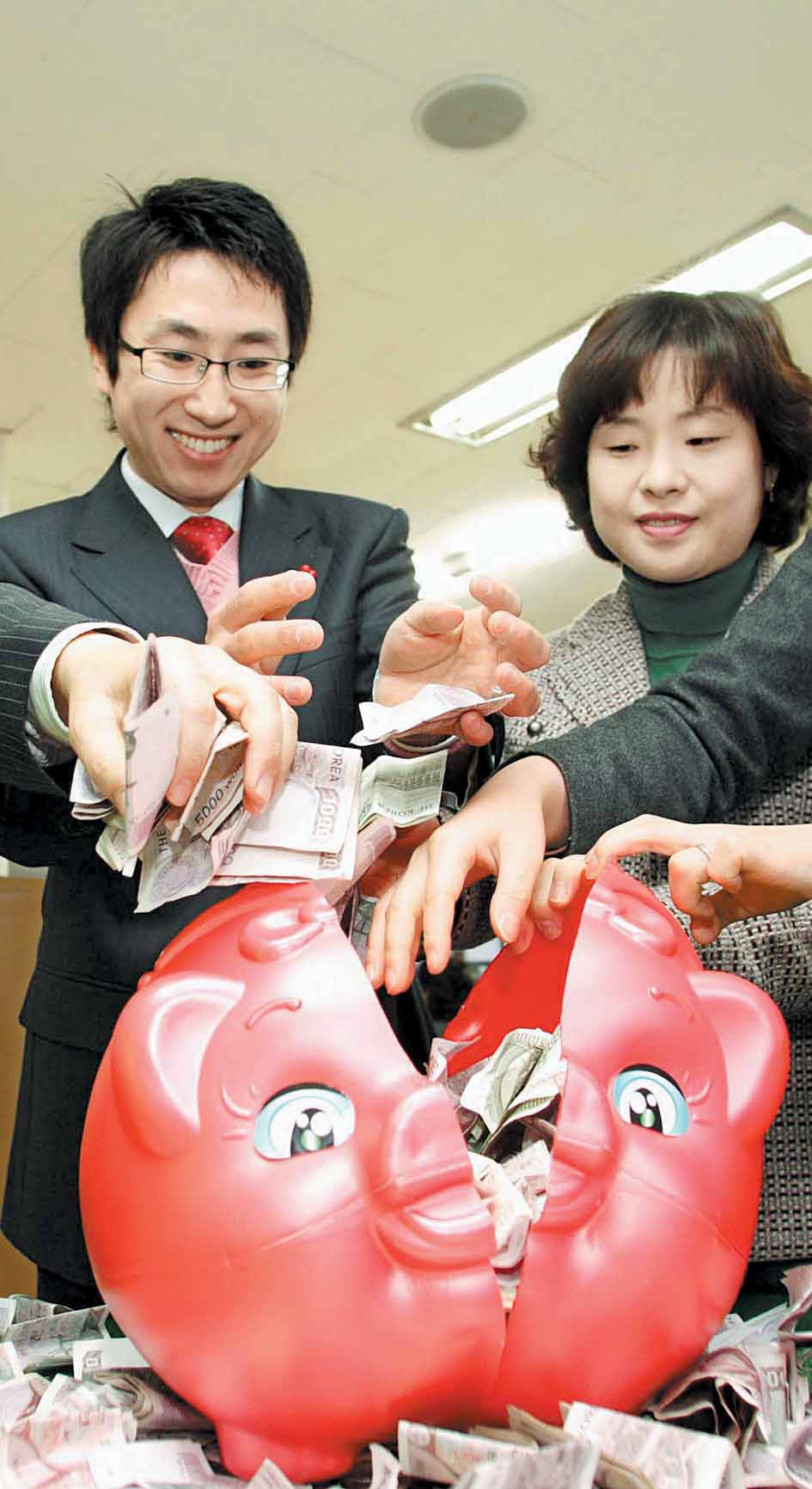 지난달 29일 오후 종무식을 마친 강서구청 주민생활지원과. 사무실 주변을 서성이던 50대 남자가 불룩한 점퍼 사이로 뭔가를 슬그머니 꺼낸다. 쑥스러운 듯 중년의 사내가 꺼내놓은 것은 빨간 돼지저금통.