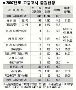 지난해보다 5명을 늘려 30명을 뽑는 외무고시는 1439명이 지원해 지난해 1274명보다 지원자가 늘긴 했지만 경쟁률은 다소 떨어져 48대1을 기록했다.
