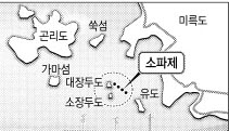 경남 통영시 산양읍 연화리 소장두도∼유도 사이 해상에 국내에서는 처음으로 ‘물에 뜨는 방파제’가 설치돼 눈길을 끌고 있다.