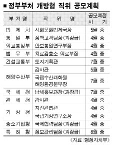 외교통상부 안보통일연구부장, 건설교통부 토지기획관, 법무부 치료감호소 의료부장 등 국장급 직위는 9개다. 통일부 정책고객팀장, 국세청 납세홍보팀장, 중소기업청 국제협력팀장, 특허청 정보관리팀장 등 과장급 직위도 4개 포함돼 있다.(표 참조)
