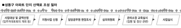 서울 성동구가 아파트 단지 내에 산책로 조성사업을 벌인다. 우선 단지 내에 산책로를 내고, 그 다음엔 단지끼리 산책로를 연결할 계획이다.