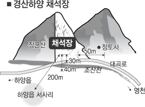 또 다른 주민은 “평상시에도 채석장에서 집채만한 돌더미가 쏟아지기 일쑤여서 장마철엔 산사태가 날까봐 두렵다.”면서 “큰 일이 나기 전에 무슨 조치가 있어야 할 것”이라고 말했다.