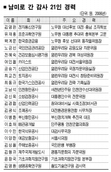 감사포럼은 지난해 10월 기획예산처의 주선으로 만들어진 모임이다. 공기업·공공기관 임원의 혁신 역량을 끌어 올리겠다며 출범시킨 ‘공기업·공공기관의 임원 혁신포럼’산하 6개 포럼 중의 하나다. 출장 간 감사의 상당수는 지난 대선 때 노무현 캠프에서 활동했거나 열린우리당 출신들이 많다. 시민단체와 청와대 출신도 있다.